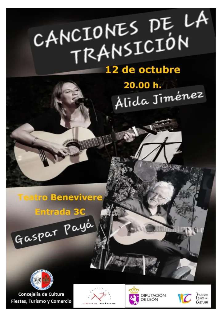El próximo domingo, día 12 de octubre, a las 20:00 horas, el teatro Benevivere acoge el espectáculo “Canciones de la transición”, que reúne una selección de canciones compuestas por artistas de la transición, que decidieron luchar por sus libertades utilizando la música como argumento. El precio de la entrada será de 3 euros.